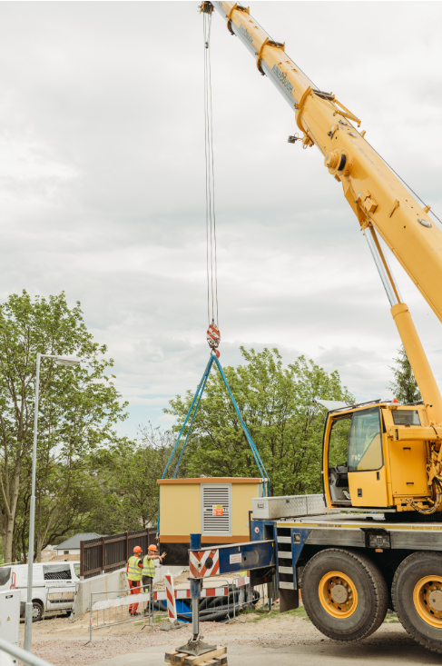 - Usazení nové kompaktní trafostanice BETONBAU 400 kV o hmotnosti 13,5 tuny ve svažitém terénu