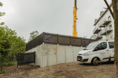- Vybudování opěrné stěny z litého betonu pro usazení trafostanice