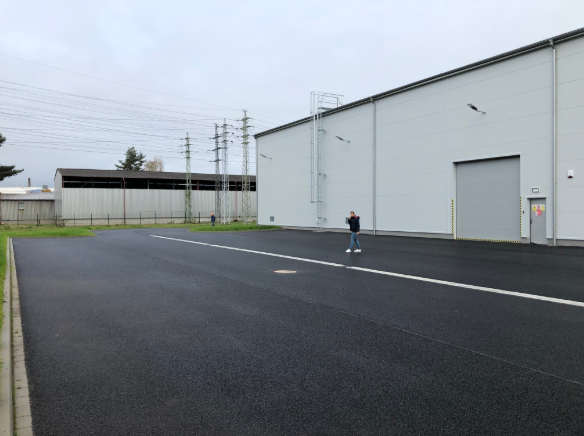 Realizace zahrnovala kompletní výstavbu železobetonové haly s PUR opláštěním pro sklad traf 22kV, novou dešťovou kanalizaci, přívod pitné vody a výstavbu areálové komunikace.