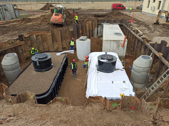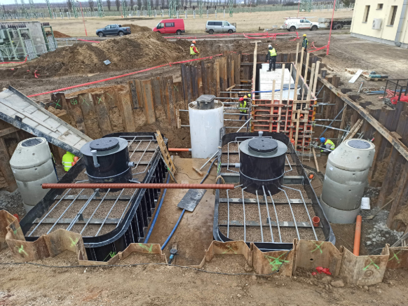 Zakázka zahrnovala výstavbu dešťové kanalizace s oddělovačem ropných látek pro stání traf a tlumivek, a instalaci monolitické čističky odpadních vod s napojením na hlavní řad o dimenzi DN 300.